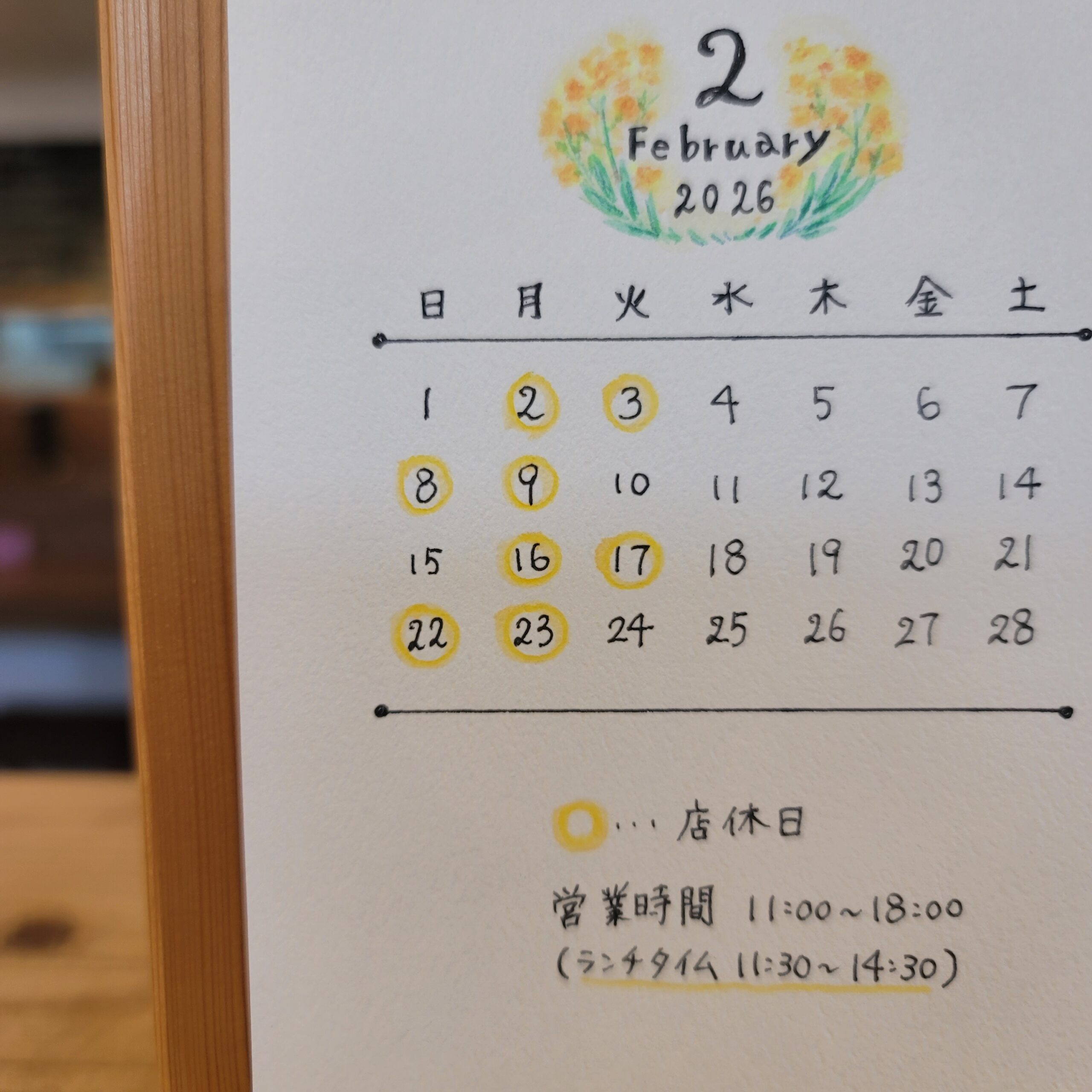2月の営業日のお知らせです🎵